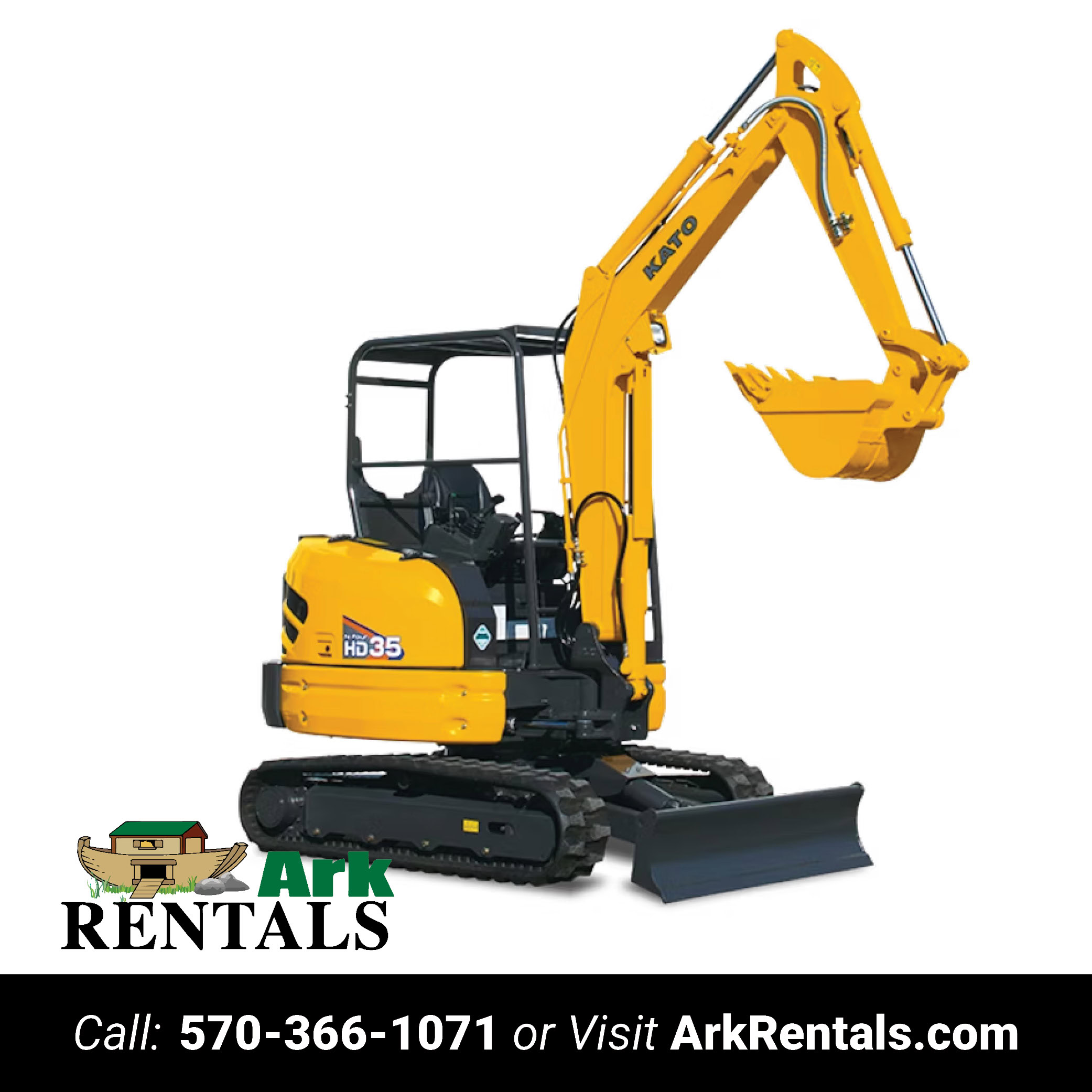 The Excavator Kato HD35N4 offers powerful performance for compact trenching and drainage work. Call Ark Rentals at (570) 366-1071 to rent this versatile machine for your next project.